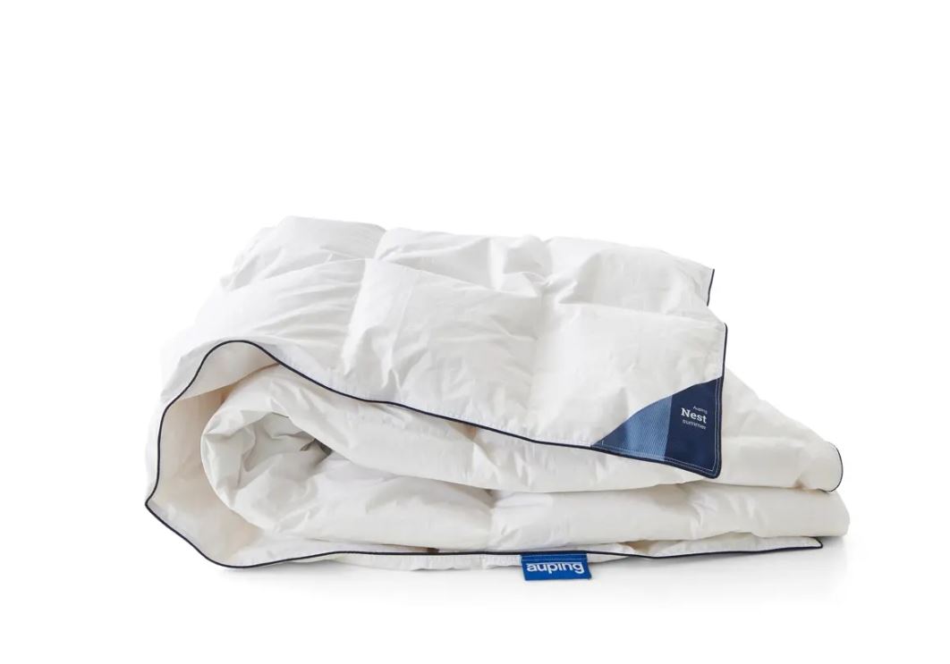 Nest dynen fra Auping er fyldt med 90% genanvendte dun og 10% genanvendte småfjer i høj kvalitet, hvilket betyder at dynen isolerer og ånder optimalt. Dynes føles utroligt let og er nem at ånde i. De genanvendte dun kommer fra dundyner og puder i høj kvalitet, men som forbrugere har valgt at kassere. Efter nøje udvælgelse, rensning og tørring er disse dun mindst lige så rene som helt nye dun. Efter forarbejdningsprocessen bliver kvaliteten og renheden af de genanvendte dun kontrolleret af det uafhængige laboratorium IDFL (International Down and Feather Testing Laboratoy)