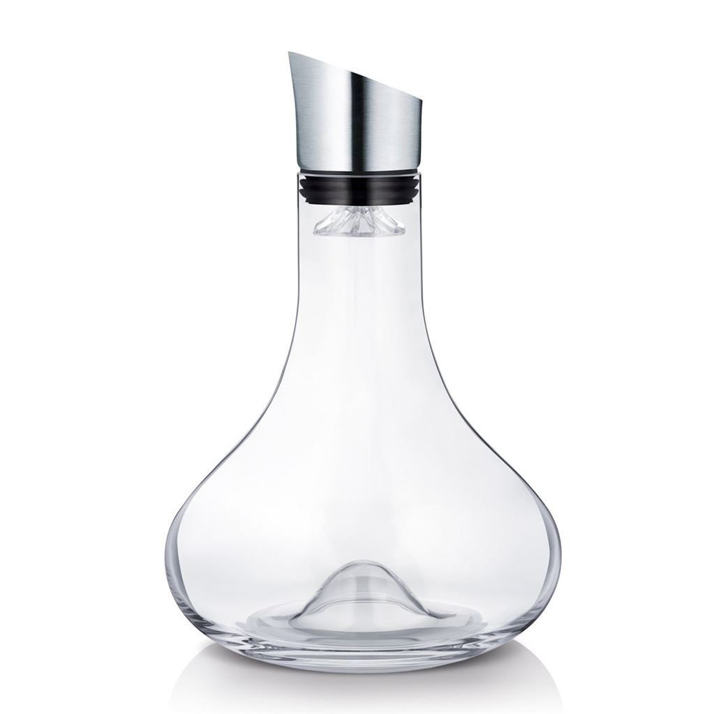 Stilfuld vinkaraffel fra Blomus. Med denne karaffel kan du opnå det fulde potentiale af din vin. Karaflen kan være med til at få den bedste smag og aroma frem i din vin, idet karaflen både ilter og dekanterer vinen, således bundfald og eventuelle korkrester filtreres fra. Med karaflen kan vinen skænkes let og drypfrit, og en fordybning i bunden af den organisk formede karaffel gør det nemt at holde om den, hvilket gør hældningen nem og sikker. Karaflen har et simpelt og elegant udtryk, hvilket gør den til et dekorativt element på middagsbordet.