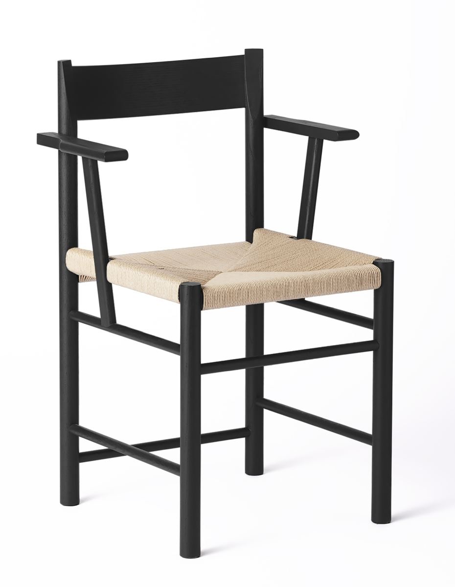 Brdr. Krüger F Chair Armrest SH: 45 cm - Black Painted Ash / Natural Paper Cord