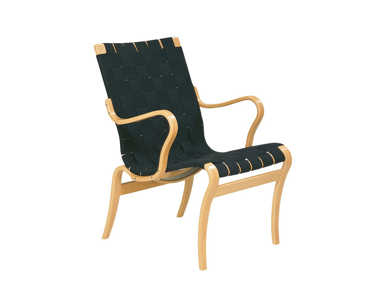 Bruno Mathsson Mi 425 Mina Lænestol m. arm - Lakeret Bøg / Sort Linnegjord