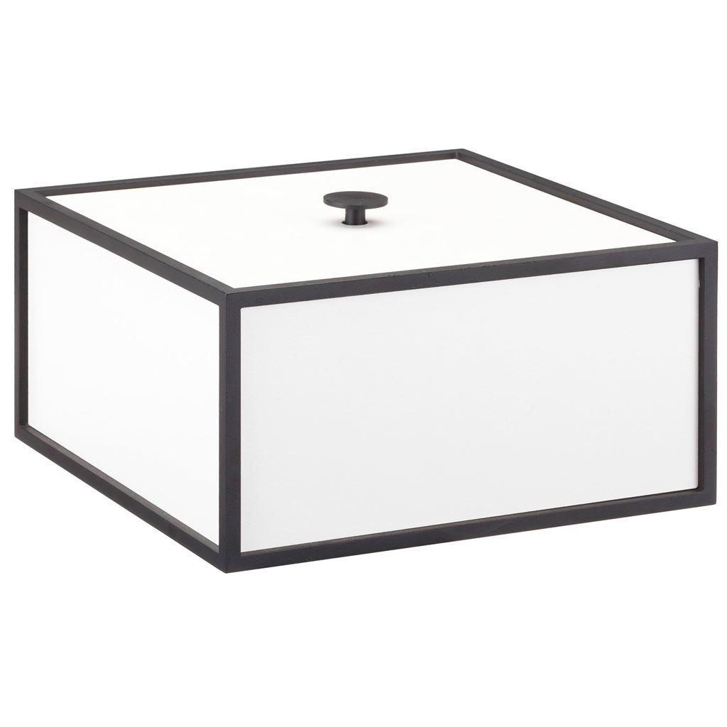 Frame er en fleksibel opbevaringsløsning af kvadratiske bokse i kubistiske rammer. Frame kan hænges direkte på væggen, stables og stå frit på gulvet. Låget kan tages helt af eller sættes på som en låge. Kombiner Frame til en klassisk reol, en unik skulptur eller noget helt tredje. Mulighederne for individuelle kombinationer er uendelige. Frame er produceret i Danmark og skabt med sans for detaljerne. Frame forener funktion, kvalitet og æstetik. Du bestemmer udtrykket.