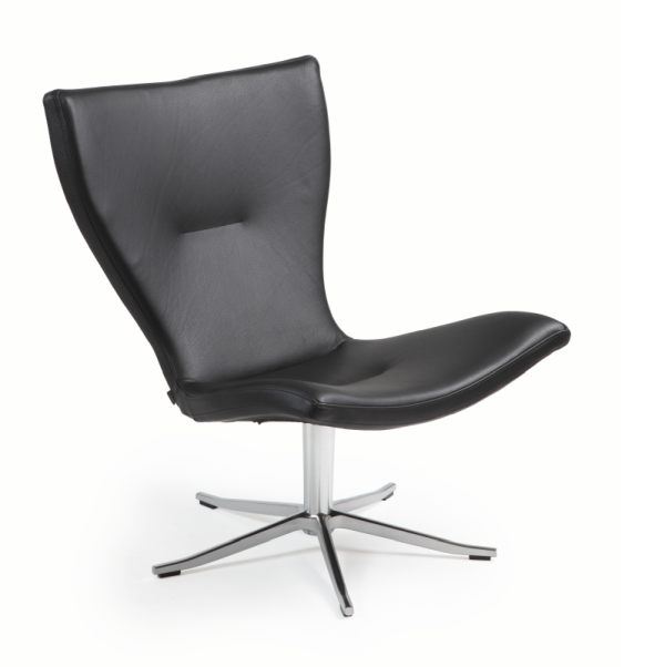 Gyro lænestolen fra Conform har et smukt design, og byder på rigtig god siddekomfort. Lænestolen er drejbar og har returdrej, så du altid kan være helt rolig når du rejser dig fra stolen, da den vil dreje tilbage til sit udgangspunkt. Stolen er uden armlæn, og er betrukket med sort fantasy læder, et blødt semianalinlæder. Stolen er 5-benet og er lavet af formstøbt aluminium. Dens elegante design og stilrene linjer gør den fleksibel når det kommer til indretning, dens former og polstring gør, at den nemt kan indgå i mange forskellige former for indretninger. Gyro lænestolen kan også fås med armlæn.