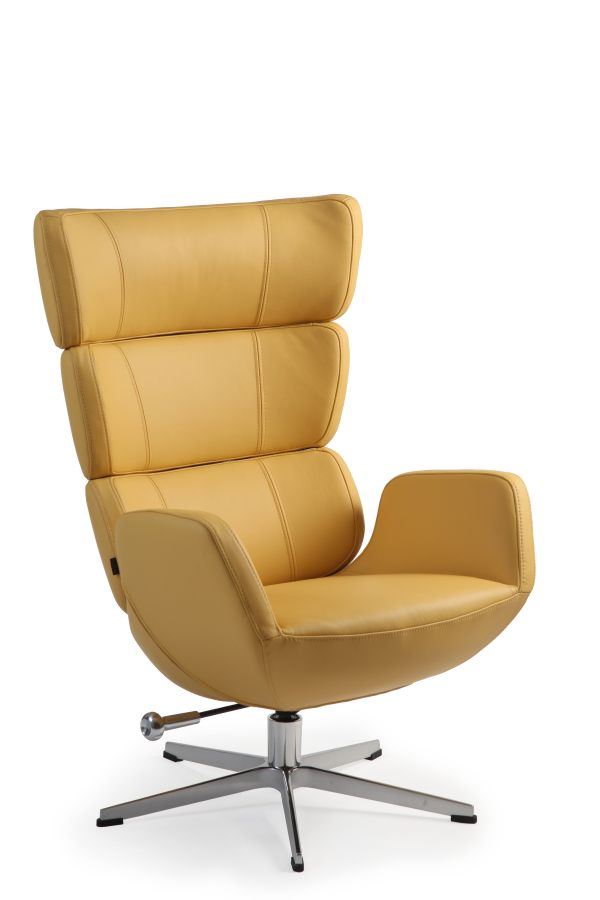 Den elegante Turtle lænestol fra Conform er designet af Lenka Teilmann og byder på rigtig god siddekomfort. Stolen er betrukket med gult fantasy læder, og benene er lavet af formstøbt aluminium. Lænestolen kan dreje samt returdreje, så stolen altid drejer tilbage til sin oprindelige position. Stolen giver rig mulighed for indstilling - ryglænet samt sæde kan vippes og indstilles efter behov.Analinlæder er et blødt læder, som er behageligt at sidde i. Tilhørende fodskammel til Turtle lænestolen kan tilkøbes.