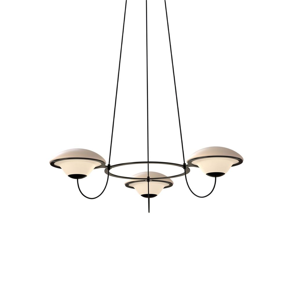 Elegant lysekronependel med tre lyskilder, der kombinerer moderne design og funktionalitet. Den sorte metalstruktur skaber et stilfuldt udtryk, mens de semi-ug Se mere ...