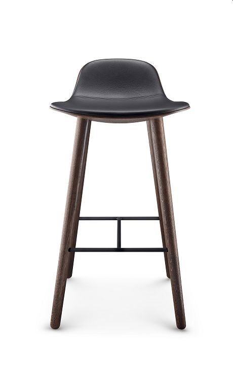 Det 3D formpressede finér giver stolen en smuk bøjet og gennemtænkt bagside og den bløde inderside af støbt skum med læderbetræk gør stolen behagelig at sidde i længe ad gangen. Barstolen gør sig godt i køkkenet med sit enkle design i rene linjer.