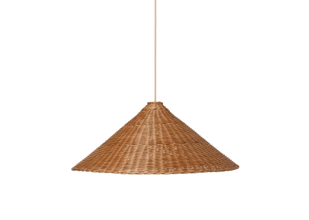Smuk, håndlavet pendel fra Ferm Living. Lampen er fremstillet i rattan, hvilket er en skøn kontrast til de geometriske former i lampens design. Lampen har et blødt og behageligt lys, som på fineste vis bryder igennem mønsteret på lampeskærmen.