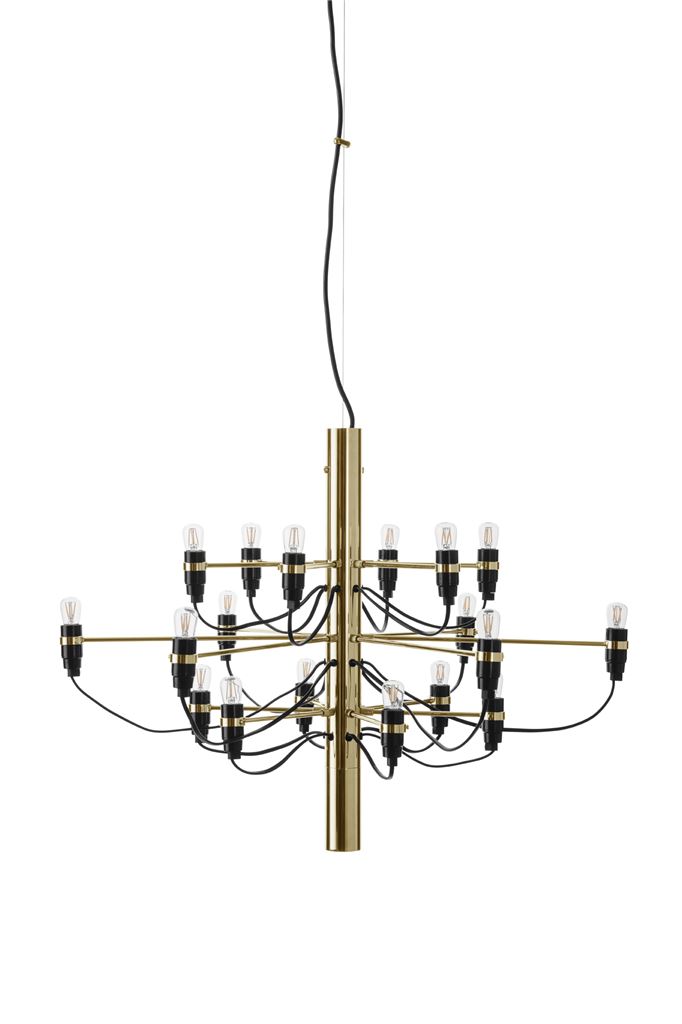 Elegant lysekrone med 30 arme i messing fra FLOS. Lysekronen er optimal til større rum som for eksempel store entreer, spisestuer eller festsale. Lampen har en utrolig flot udstråling og giver et næsten majestætisk udtryk, når den er tændt. Lampen har en 2,8 meter lang sort ledning, 20 LED lyskilder medfølger.