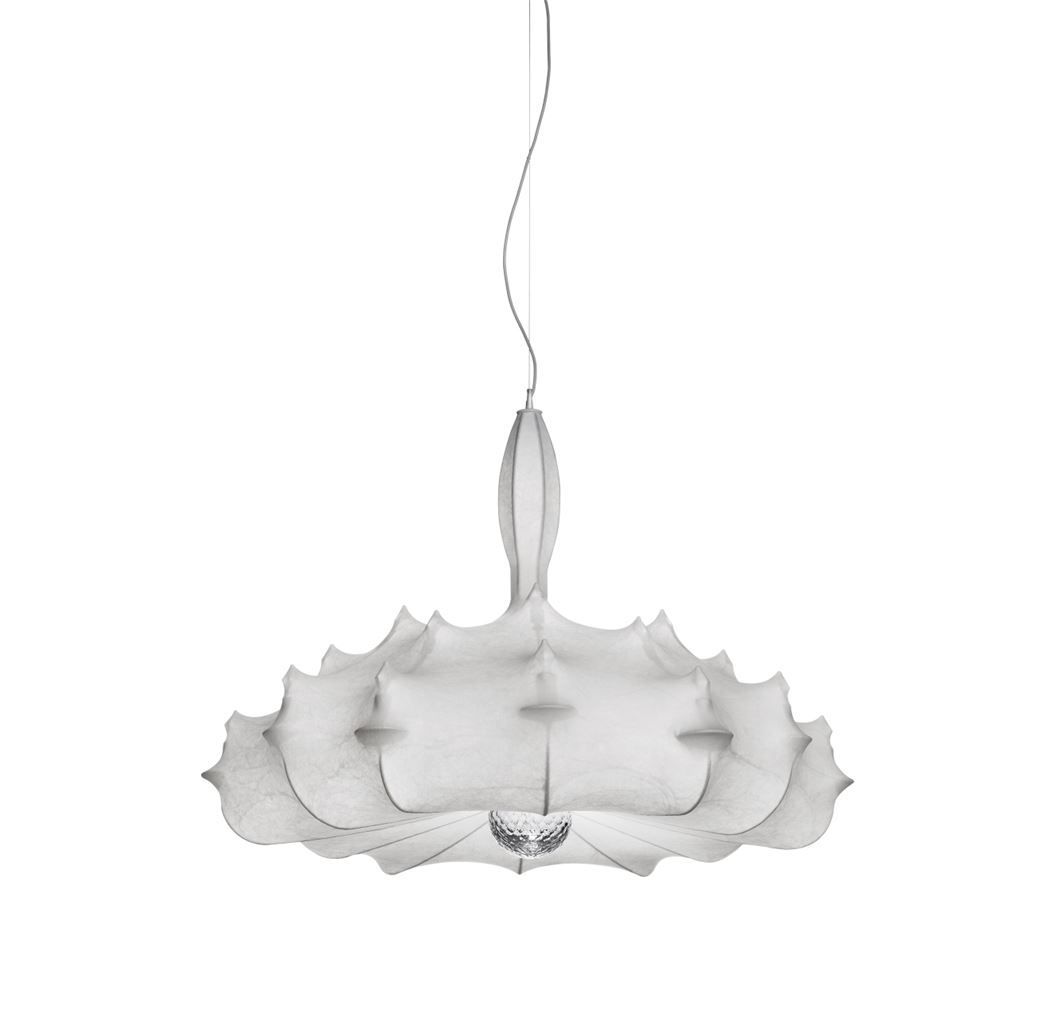 Smuk pendel fra FLOS, designet af Marcel Wanders.Zeppelin pendlen er ideel at hænge i et større rum, da den med sit skulpturelle udtryk uden problemer fylder et helt rum med æstetik. Lampen har en indre stålstruktur, der er sprøjtet med en speciel harpiks for at give lampen den unikke puppe lignende tilstand. Til slut har man for neden placeret en klode af krystal, som er med til at give et gnistrende og smukt lys.