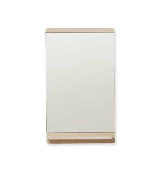 Det flotte vægspejl er både funktionelt og elegant i sit udtryk en med lille hylde foran samt dets rene linjer. Det vil passe smukt ind i mange moderne hjem til at hænge i badeværelse, entré eller soveværelse. Derudover har hylden også en lille fordybning, hvor du kan stille og opbevare smykker og andre småting.