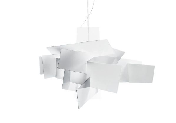 Æstetisk lampe fra Foscarini, designet af Vincent Garcia Jimenez og Enrico Franzolini. Lampen er sammensat af forskellige plader der overlapper hinanden, hvilket kreerer et dynamisk design. På grund af de forskellige plader kommer lyset frem i alle retninger og skaber derfor en bred aura af lys og skygger. Lampen giver noget personlighed og kant til din indretning og ville være ideel i spisestuen over spisebordet.
