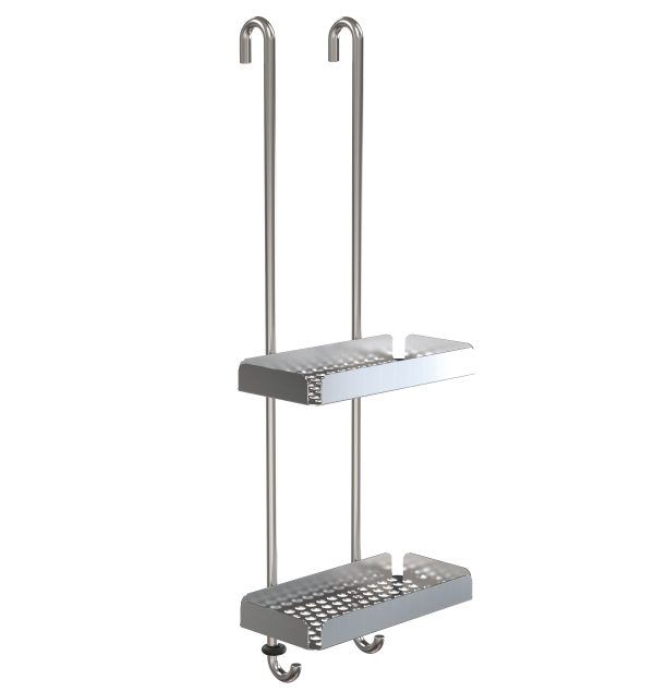 Praktisk sæbehylde fra FROST. Sæbehylden er nem at montere, takket være dens ophæng, kan den hænges direkte på glasdøren på badeværelset, så du slipper for at bore huller eller andet installation. Sæbehylden har et råt, elegant udseende og er lavet i rustfri stål. Hylden er udstyret med to hylder og to kroge så du har mulighed for at hænge en vaskesvamp, bruseskraber eller andet der er praktisk at have lige ved hånden. Hylden er en del af NOVA2 serien, bestående af tilbehør til badeværelse, garderobe og køkken. Det er en fleksibel serie som kan kombineres, mixes og matches lige efter behov. Både indbyrdes men også på tværs med FROSTs øvrige serier.