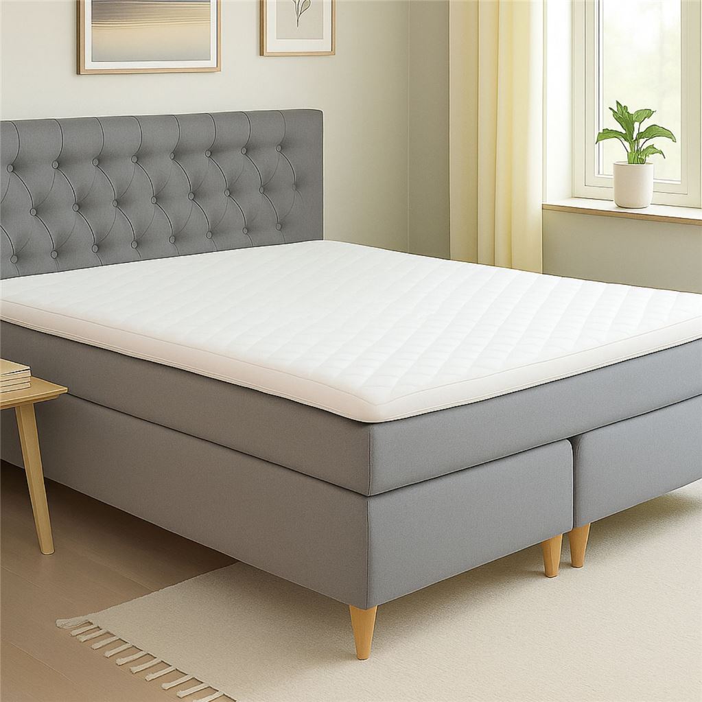 En standard kontinentalseng består af 2 boxmadrasser, 2 vendbare madrasser og 1 cover.