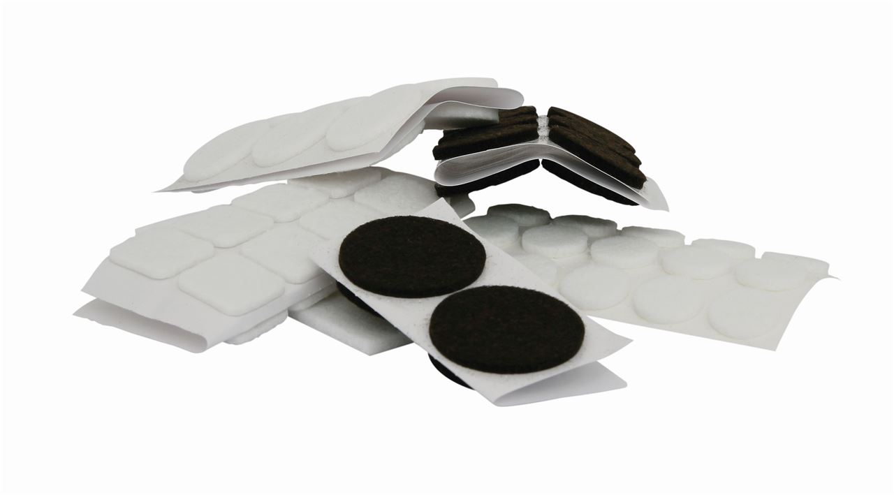 OBS: Billedet viser både filtpuderne i hvid og sort, og i forskellige størrelser. Disse filtpuder er i hvid og måler 20x20 mm.