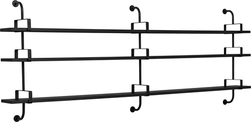 Smuk stilfuld hylde. Démon også kaldet Biblio-Démon er designenet af Mathieu Matégot. Den selv-lærte ungarsk designer, arkitekt og kunstner brugte det meste af sit liv i modebyen Paris, hvor han bosatte sig i 1931 efter at have afsluttet sine studier på Budapests skole for kunst og arkitektur. Matégot var kendt for hans teknik, Rigitulle. Han kombinerede metalrør med perforeret metalplader. Rigituille kan bøjes, foldes og formes. På den måde kunne Matégot designe møbler med gennemsigtighed, vægtløshed og med et evigt moderne look. Hylden har et tidsløst udseende og er designet i 1954. Hyldesystemerne opstod som svar på et hjemmebibliotek og studie. Hylden kan anvendes på uendelige måder. Den er perfekt egnet til alle rum i hjemmet og kan give en ekstra dimension af æstetik. Hylden kommer i farven black stained ash og måler 215 cm i længden. Maksimal belastning på systemet er 65,7 kg.