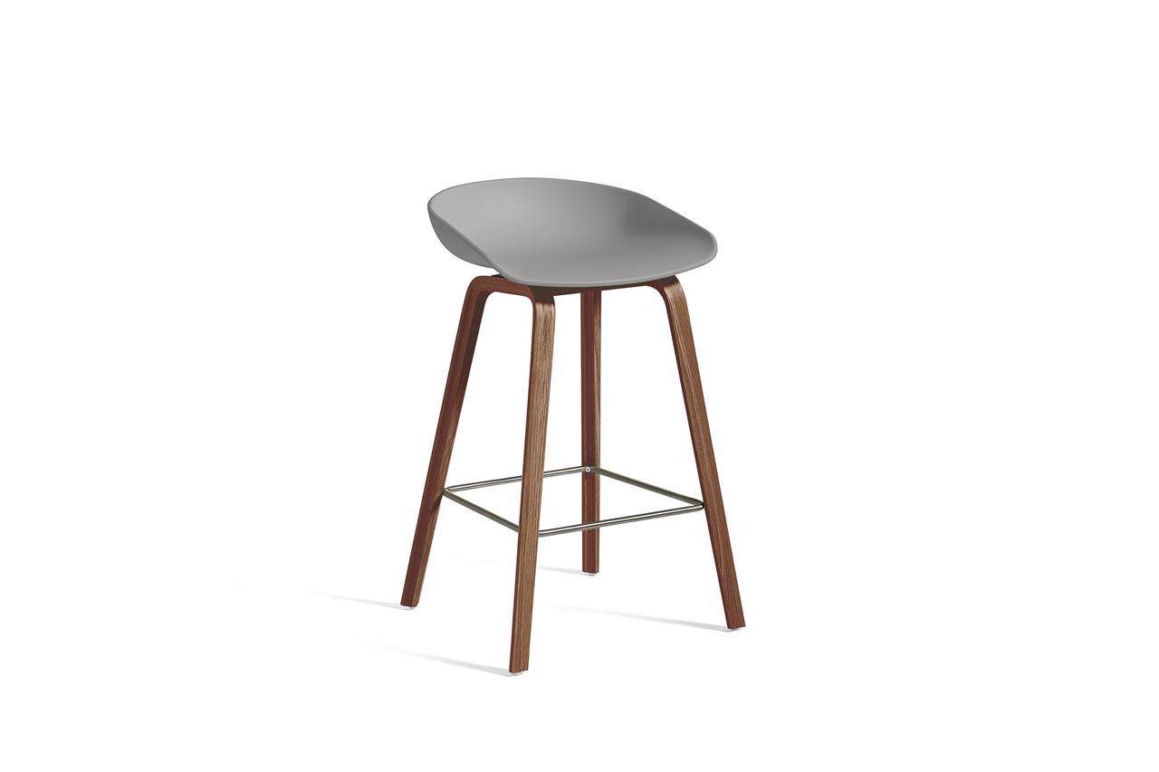 HAY AAS 32 Barstol Low SH: 65 cm - Lacquered Walnut Veneer/Concrete Grey
