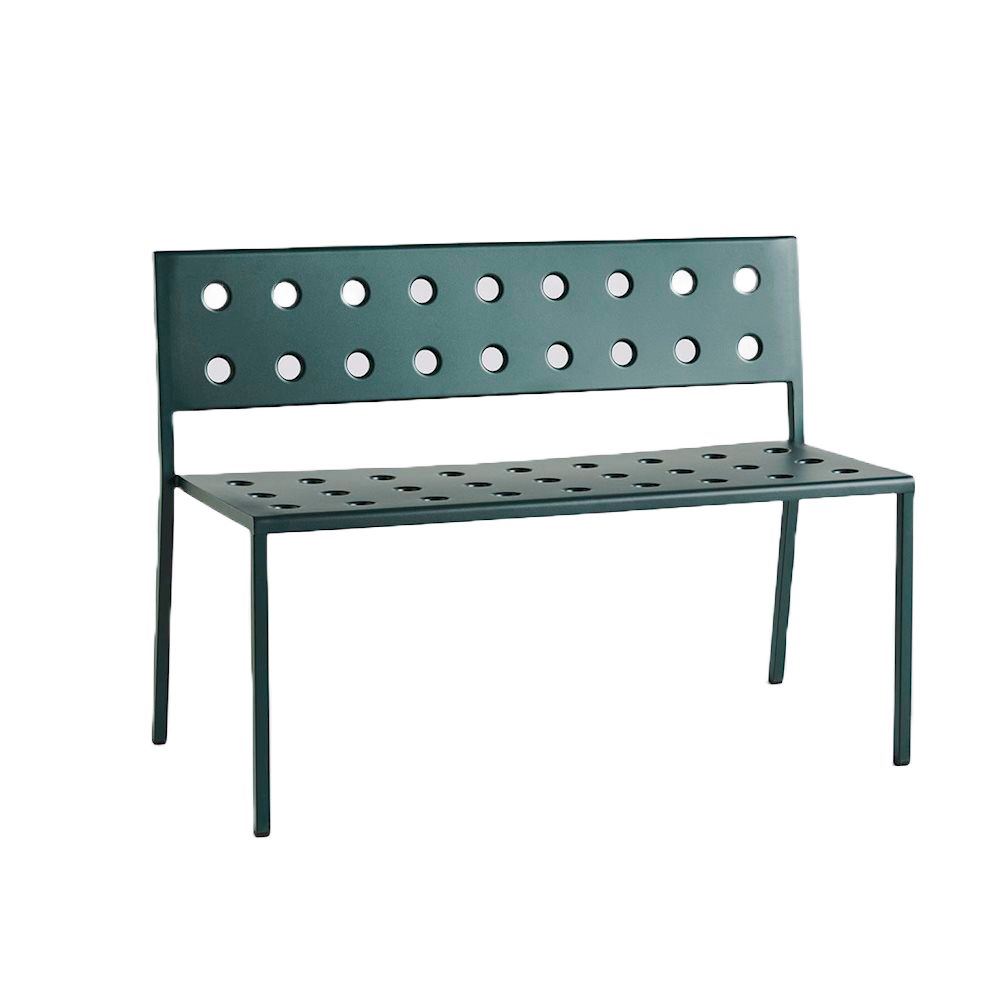HAY Balcony Dining Bench er designet af Ronan og Erwan Bouroullec og er en funktionel bænk til udendørs brug. Balcony serien forener et rektangulært design med bløde, imødekommende former og slanke ben. Hullerne i designet styrker konstruktionen samtidigt med, at den skaber et særligt udtryk. Balcony Dining Bench er lavet i pulverlakeret stål med en udendørs primer for optimal holdbarhed. Bænken kommer i forskellige farver, hvilket gør den egnet til en bred række indretninger, og kan bruges til indretning af alt fra udendørs områder til altaner.