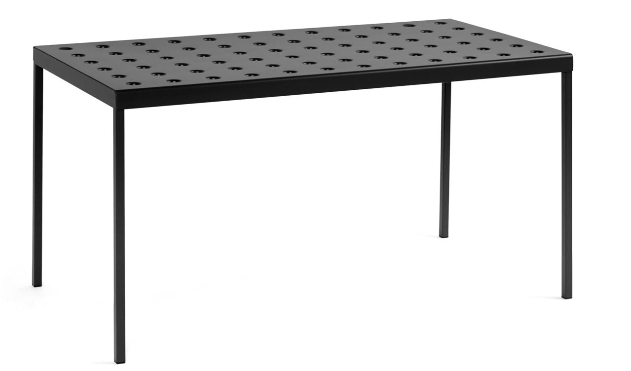 HAY Balcony Table er et elegant og funktionelt spisebord beregnet til udendørs brug. Bordets simple kantede design bliver blødgjort med de runde elementer i bordpladen og de minimalistiske ben. Spisebordet er lavet af pulveriseret stål der er yderst modstandsdygtigt og holdbart. Bordet findes i forskellige farver og størrelser, hvilket gør det fleksibelt i forhold til hvor det skal tages i brug henne.