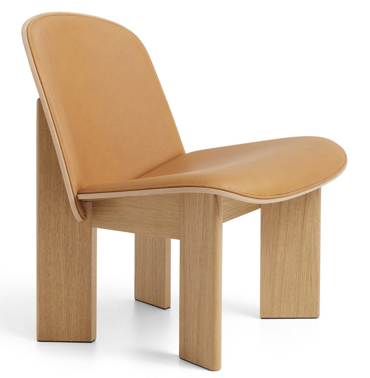 HAY Chisel Lounge Chair Polstret - Lacquered Oak/Sense Leather CognacChisel loungestolen fra HAY er designet af den norske designer Andreas Bergsaker, Chisel