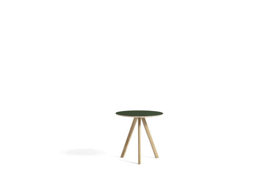 HAY CPH 20 Round Table Ø: 50 cm - Lacquered Solid Oak/Green Linoleum