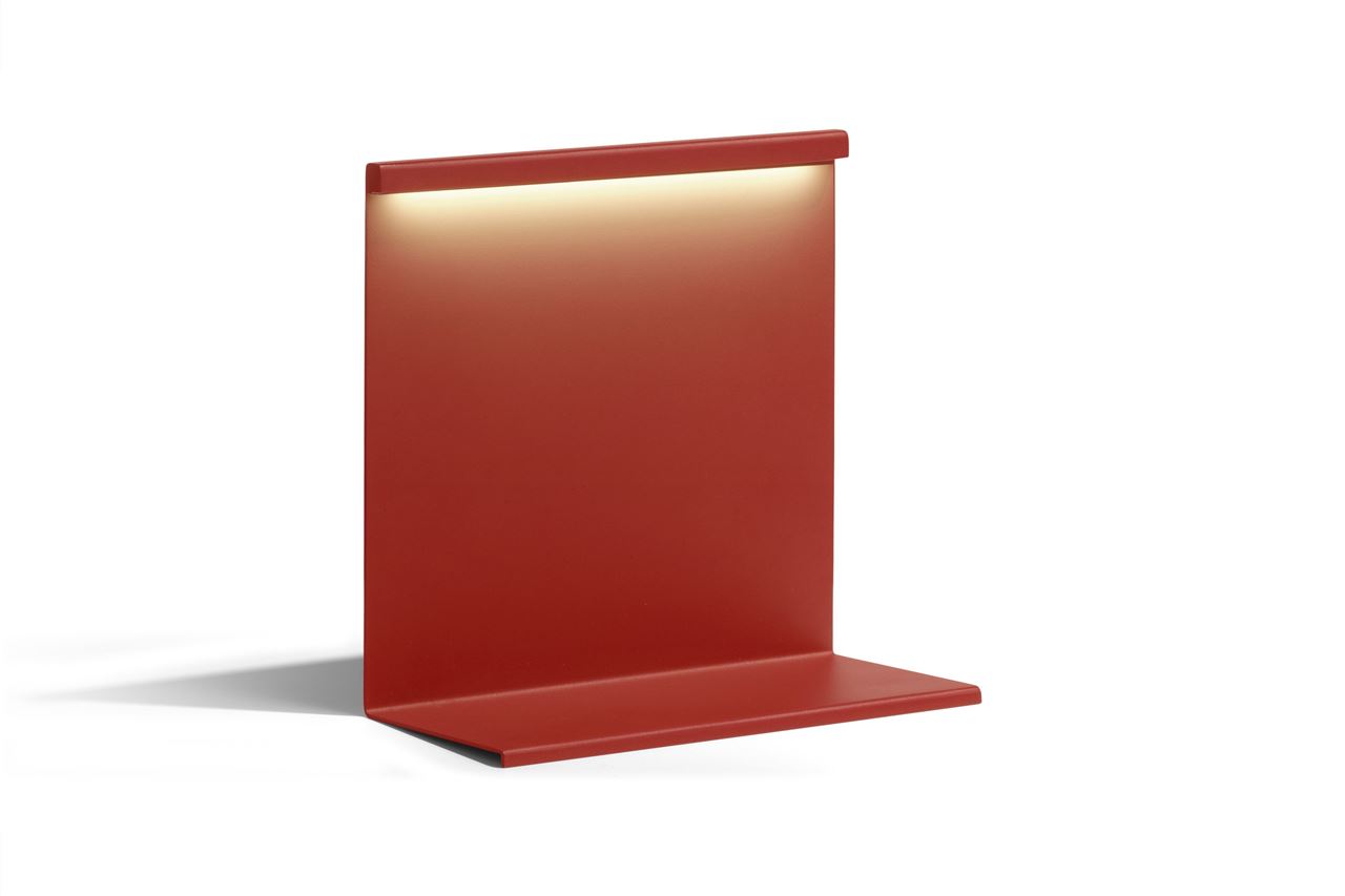 LBM lampen fra HAY er designet af Moisés Hernández. Lampen er inspireret af innovativ arkitektur og en fascination med geometri, farver, lys og skygger. Lampen består af en tynd sålplade, der både er funktionel som lampe men også som en lille opbevaringshylde. Lampen er derfor perfekt som sengelampe da du kan opbevare din mobil, dine briller eller et glas vand på den lille hylde.