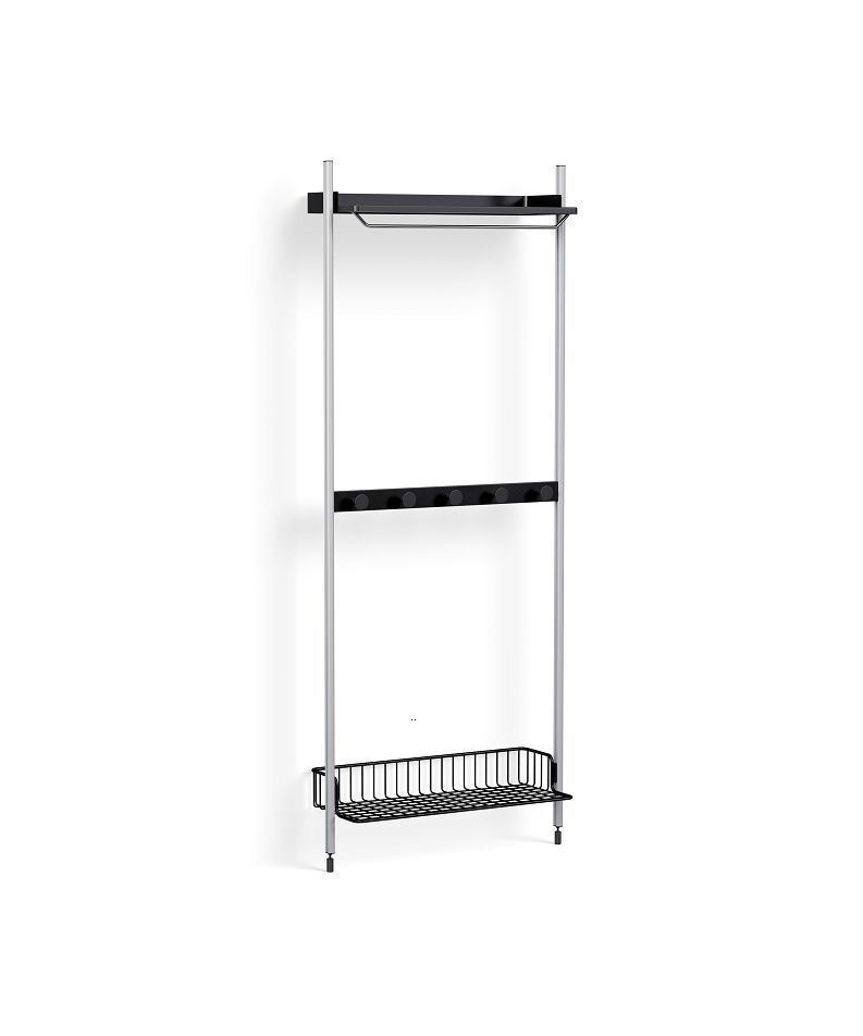 HAY Pier System 1041 1 Column 82x209 cm - PS Black Steel/Clear Anodised Profiles/Chromed Wire Shelf