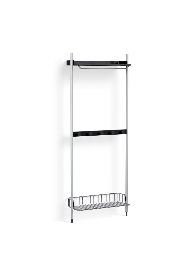 HAY Pier System 1041 1 Column 82x209 cm - PS Black Steel/Clear Anodised Profiles/Chromed Wire Shelf