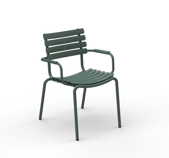 Den smukke havestol med brede plastiklameller på et minimalistisk stel i pulverlakeret aluminium. Stolen har et rent og skarpt design, men med de bløde, runder kurver får den også et levende og dynamisk udtryk. Lamellerne er lavet af dansk husholdningsplastikaffald og produceret i Danmark. Her er altså i bund og grund tale om en kombination mellem dansk design og dansk innovation, som smelter sammen og harmonerer rigtig godt ved dette møbel.