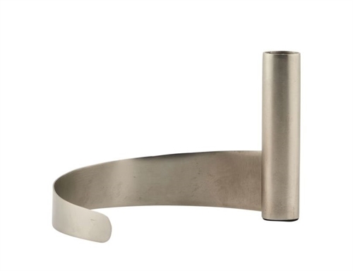 Skulpturel lysestage fra House Doctor. Lysestagen har et råt, industrielt og ufuldendt look da svejsedetaljerne skiller sig ud. På trods af at den kan se tung ud på grund af det børstede jern, er det en meget let lysestage, der ville være smuk i vindueskarmen eller på sofabordet.