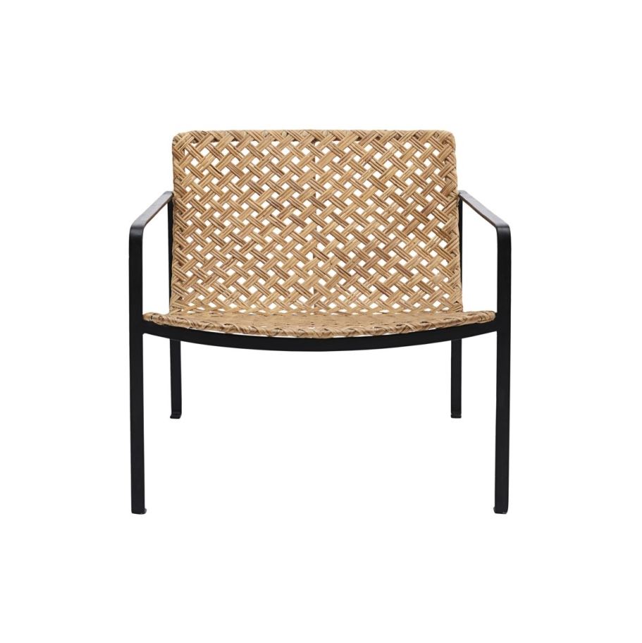 Smuk og hyggelig stol fra House Doctor, som passer perfekt i både stuen eller udestuen. Denne lækre stol kan skabe et hyggeligt loungelook og kan nemt gives et personligt præg med en pyntepude. Stolen er lavet af flettet rattan og sort metal, hvilket giver stolen et stilrent og industrielt udtryk og kan sammensættes med en fodskammel for at skabe et afslappet look.