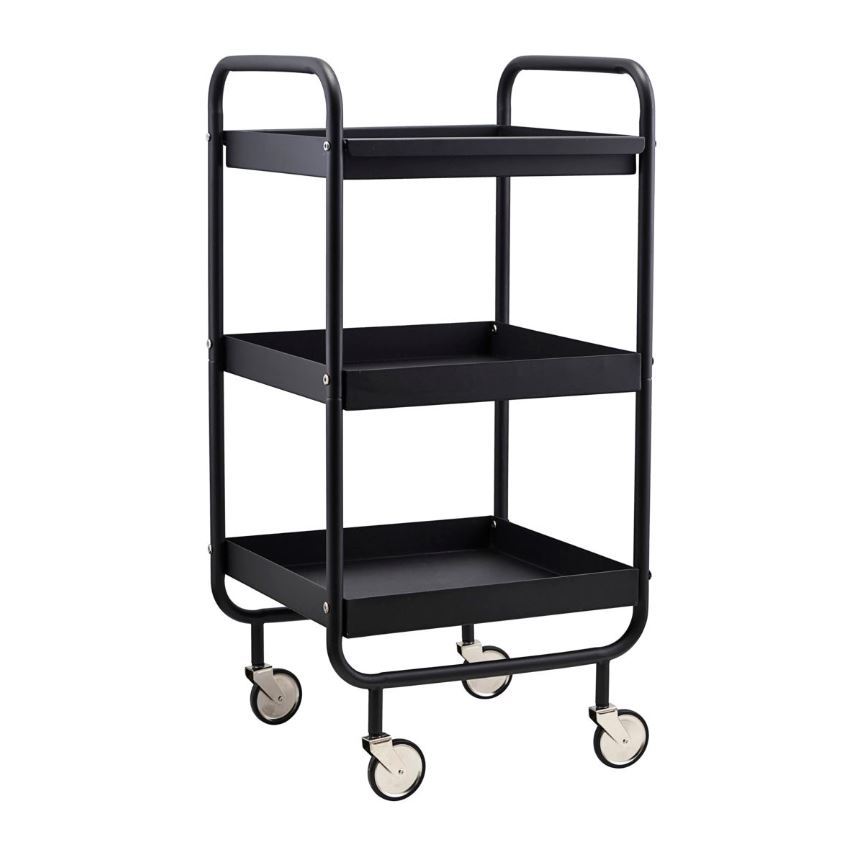 Skønt rullebord fra House Doctor. Den smarte trolley er en kombination melem en reol og et rullebord, den har derfor et hav af anvendelses muligheder. Møblet har et industrielt og minimalistisk look der passer perfekt til tidens tendenser og de fleste moderne nordiske hjem. Brug reolen som rullebord i køkkenet til opbevaring eller som reol i stuen - kun fantasien sætter grænser. Derudover har trolleyen en smart aftagelig bakke så du nemt kan servere morgenkaffen på sengen.