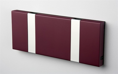 Flot og elegant knagerække fra KNAX. Knagerækken er i en flot lilla farve, med grå knager. Den er stilfuld og dermed kan den bruges i mange indretninger. Brug knagerækken i entréen, stuen, soveværelset eller måske køkkennet. Knagerækken er 19,8 cm lang og 7,9 cm høj. Knagerækken har 2 knager. Alle knager er med vippefunktion.