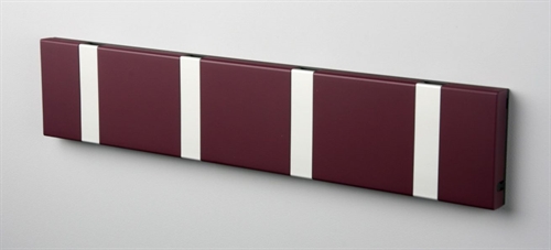 Super flot og elegant knagerække fra KNAX. Knagerækken kommer i en flot lilla farve, med grå knager. Den er stilfuld og dermed kan den bruges i mange indretninger. Brug knagerækken i entréen, stuen, soveværelset eller måske køkkennet. Knagerækken er 39,6 cm lang og 7,9 cm høj. Knagerækken har 4 knager. Alle knager er med vippefunktion.