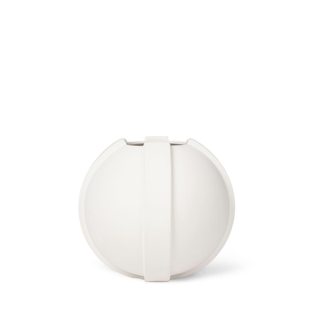 Smuk vase fra Louise Roe. Vinci vasen viser en rund silhuet, fremhævet af et bælte-lignende bånd, der omkranser dens figur - en visuel detalje, der metaforisk kanaliserer cirkulær energi. Håndværksmæssigt håndstøbt i Portugal. Det større indtryk er en storslået skulptur, der står selvstændigt.