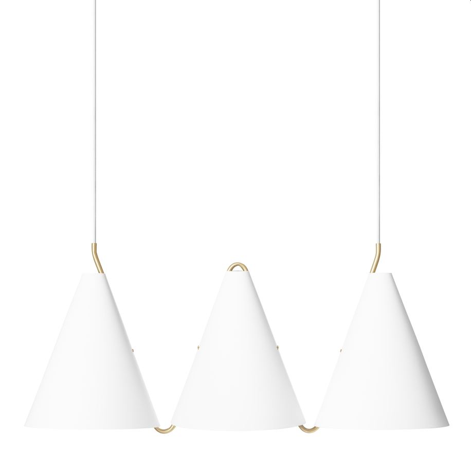 Elegant pendel designet af Bent Karlby. Mosaik er en legende, sofistikeret serie, bestående af gulv-, bord-, væglamper samt pendler i forskellige størrelser. Mosaik kollektionen blev designet af Bent Karlby i 1959, og er et belysningssystem som er baseret på enkelte, geometriske designprincipper. Lampens koniske lampeskærme er forbundet med messingrør og giver et moderne og tidløst look, der på enkelt vis tilføjer en masse detalje til rummet pendlen hænger i. Hæng lampen alene over spisebordet, eller hæng lampen i klaser. Lampen har en 3 meter lang hvid tekstilledning, og er beregnet til indendørs brug. Lyskilde er ikke inkluderet.