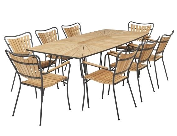 Dette havemøbelsæt består af 8 stk. havestole og 1 bådformet bord.