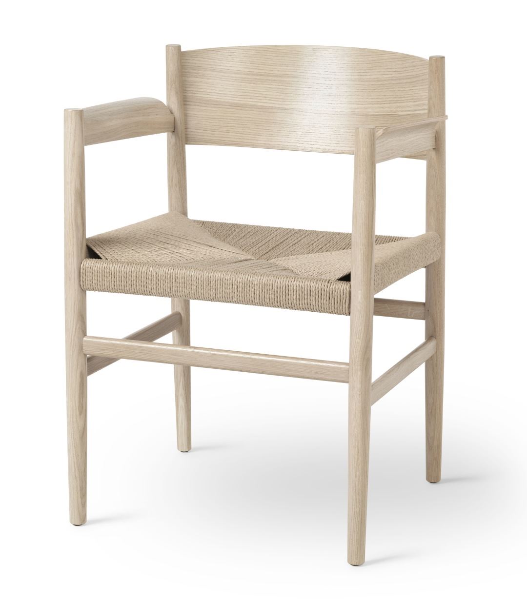 Mater Nestor Sidechair Armrest SH: 44 cm - White Oak/Natural Paper Cord Seat