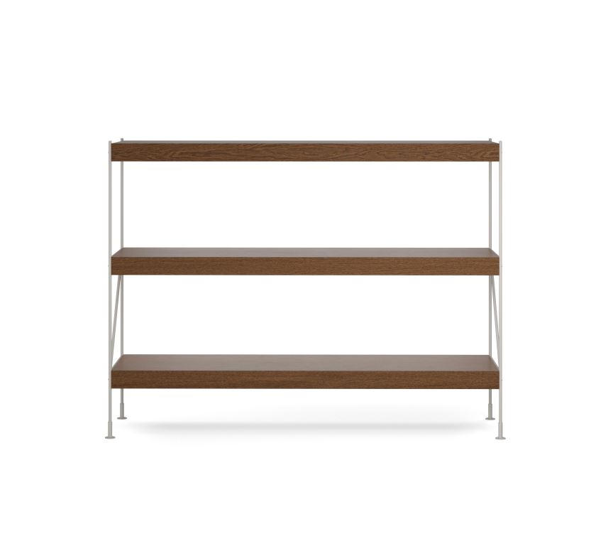 Reolens design er sofistikeret og har et elegant udtryk, der med dens neutrale farve og sine rene linjer tilføjer et smukt udseende og en hjemlig atmosfære. Reolen har 2 hylder i solid, mørkolieret egetræ, hvilket er utrolig flot sammen med de industrielle stålben. Reolen er med dens højde ideel at have stående i entreen, kontoret, opholdsstuen eller spisestuen. Brug den til at opbevare dine yndlingsting og udstil dem på fineste vis med Zet storage system.