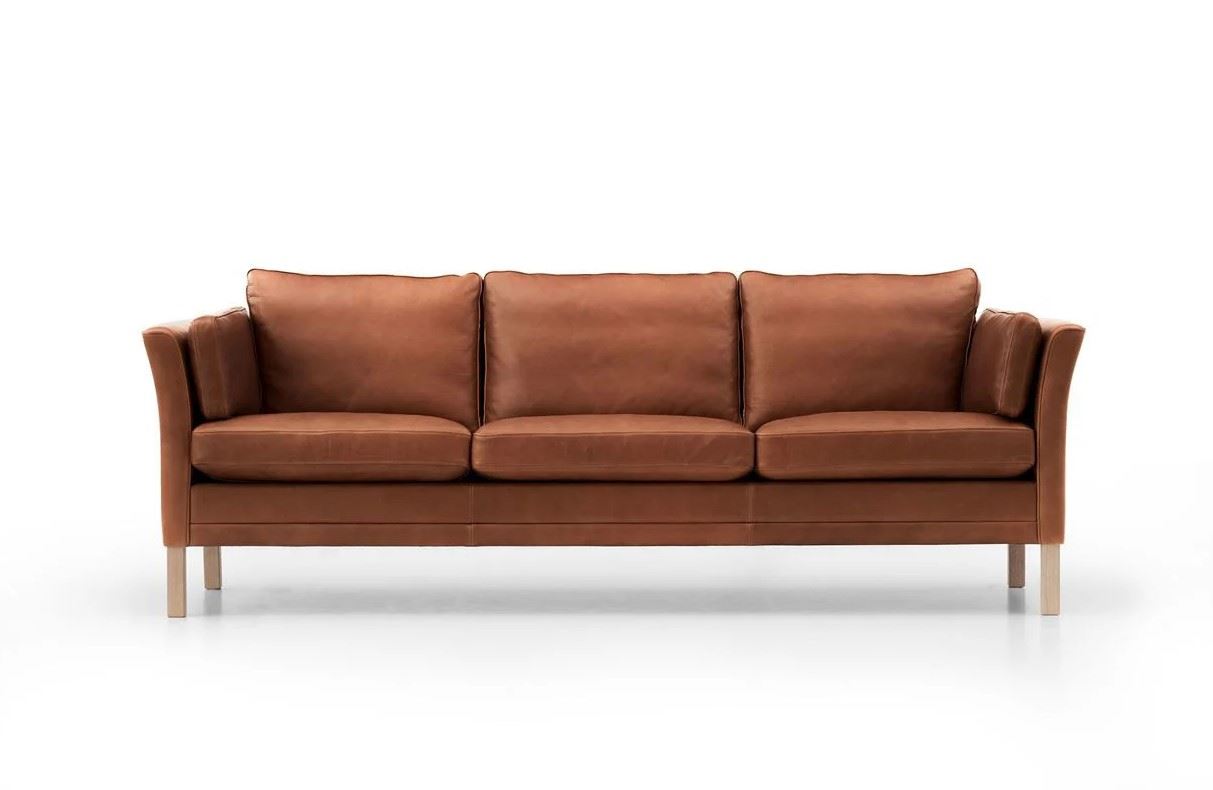 Mogens Hansen 2225 3 Pers Sofa L: 218 cm - Cognac Loke Læder /Firkantede Egetræsben