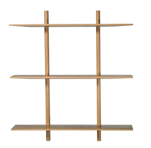 Hyldesystemet består af 3 hylder, som er designet med underfræste kanter, hvilket er med til at give hylderne i egetræ et helt unikt udtryk, som oser af håndværkstraditioner.