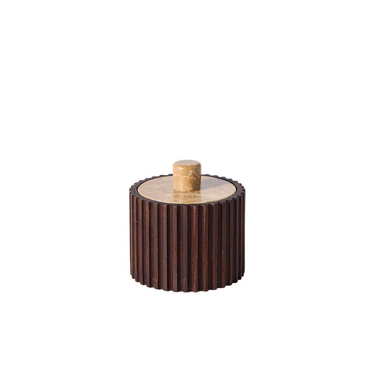 Den elegante, mørke krukke med låg fra Yami er fremstillet af karboniseret asketræ, hvilket giver den sin karakteristiske dybe farve, der kendetegner serien. Det lyse marmor tilføjer en smuk kontrast til det mørke træ og bidrager til et design med kant. Låget er afrundet og ligger godt i hånden, hvilket gør det både praktisk og behageligt at bruge.
