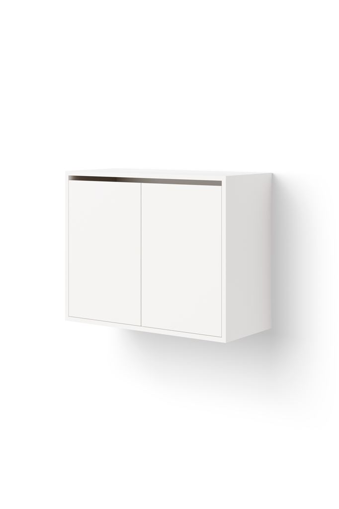 Skabet er prydet med begge døre der uden besvær skjuler dine væsentlige ting med minimalistiske håndtag, der vedligeholder systemets slanke appel. Et lille rum af luft fungerer som et diskret håndtag, der understreger seriens subtile linjer.