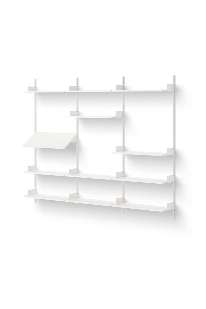 Denne væghængte hylde fra New Works er en praktisk vægreol der kan hænges flere steder rundt omkring i hjemmet. Den er designet til at blende ind i indretningen. Hylderne har indbyggede bogsstøtter på hver ende samtidig med at de også fungerer som monteringselement til vægskinnerne. Dette reolsystem kan vokse med tiden da der frit kan tilføjes enkelte hylder eller hele reoler til dit eksisterende modul.