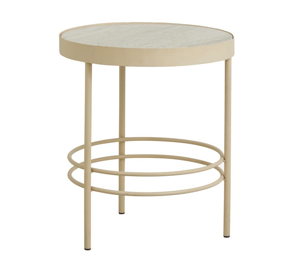 JUNGO sidebordet fra Nordal har et tidløst, elegant design. Bordet er fremstillet i sandfarvet lakeret jern og med en bordplade i naturligt marmor, der gør hvert bord unik. Sidebordet fra JUNGO kan med fordel kombineres med andre JUNGO møbler, eller tilføjes til den eksisterende indretning. Sidebordet har en diameter på 50 cm. Marmor er et naturmateriale. Den præcise farve og mønster vil variere fra bordplade til bordplade, og hvert bord vil være unik.