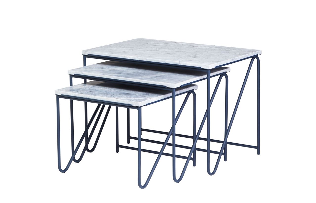 Please Wait to be Seated Triptych Nesting Tables B: 57 cm - Grå/Blå