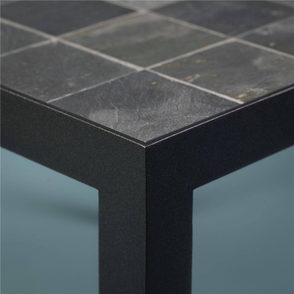 Ønsker du et unikt sofabord til din stue, er dette bord fra Rübner det perfekte valg. Dette sofabord er fra en kollektion af eksklusive sofaborde fremstillet af stål og 400 millioner år gammelt skiffer udvundet i Wales. Siden 1880'erne har skifferen været brugt som tagsten på smukke arkitektoniske bygninger i hele Danmark. Nu bliver skifferpladerne skåret op, rengjort og håndsorteret og bliver til borde i stramt, nordisk design. Med et sofabord fra Rübner er du derfor helt sikker på at have et unikt møbel i dit hjem, idet ikke to borde er ens. Skiffer er et levende materiale, der påvirkes af vind og vejr, og også af lokalitet, og heraf opstår det unikke farvespil i hvert enkelt bord. Med hvert bord følger et oprindelsescertifikat med historien om det tag, den pågældende skiffer stammer fra. Sofabordets stel produceres af konstruktionsstål, som er pulverlakeret, hvorved man opnår en meget stærk, rengøringsvenlig og eksklusiv overflade. Brug bordet både til hverdag og til fest - et Rübner bord tåler det hele. Skifferen holder også til, at man placerer varme genstande direkte på bordet. Alle Rübner borde er håndlavede i Danmark. Bordet fås i flere størrelser, ligesom stellet også fås i to farver.