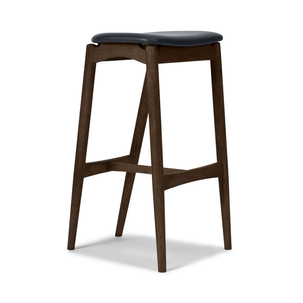 Sibast Furniture No 7 Barstol Høj H: 75 cm - Eg Mørk Olie/Sort Læder