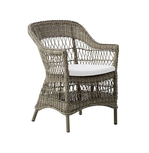 Skøn havestol fra Sika-Design. Stolen har et romantisk og charmerende udtryk der indbyder til hygge. Alle møblerne fra Sika-Designs Georgia Garden serie er håndflettet i vedligeholdelsesfrie fibre, hvilket gør dem utrolig praktiske og ideelle til udendørs brug. Du kan for eksempel kombinere stolen med et Sika-Design lounge- eller havebord og skabe et ideelt fundament for hyggelige sommerdage i haven eller på terrassen. Du kan naturligvis også bruge stolen indendørs, hvortil den vil blive en særdeles fin tilføjelse til den øvrige indretning.