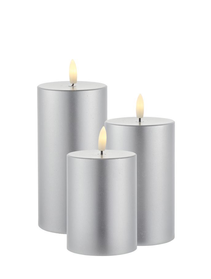 Sirius Sille Exclusive 3 stk Batteridrevet Stearinlys H: 10/12,5/15 cm - Sølv