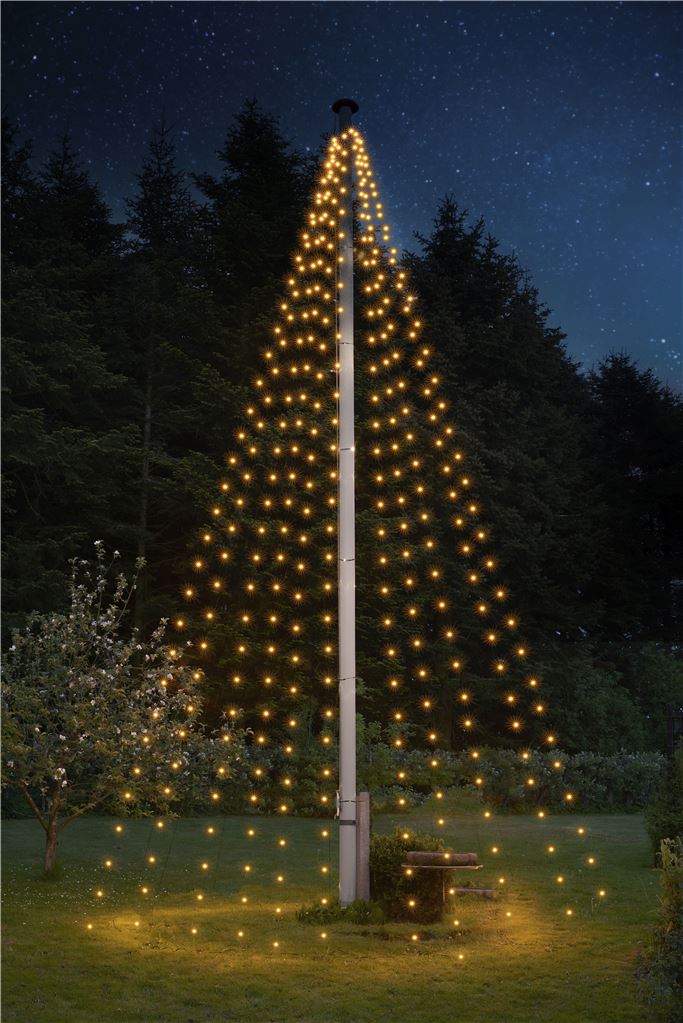 Top Line Flag Pole gør det nemt, at julepynte flagstangen. Lyskæden sættes fast i flagstangens top og ved hjælp af Ground Pegs sættes hver kæde fast til jorden. Lyskæden skaber en hyggelig julestemning med dens lys.