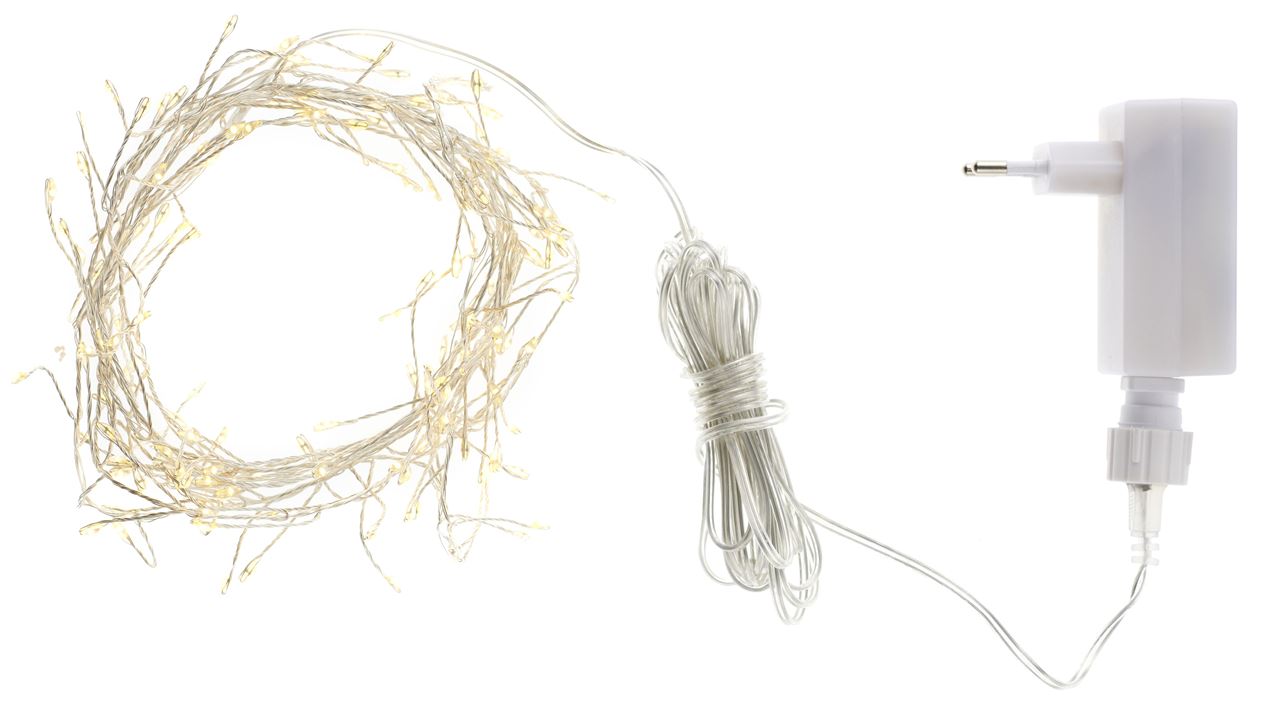 Sirius Lyskæden Knirke Cluster består af små fine LED lys. Kæden er lavet med en fin sølvtråd, der er snoet rundt om den transparente ledning, hvorpå de små fine lys er påsat. Leveres inkl. transformer og 3 meter ekstra ledning.